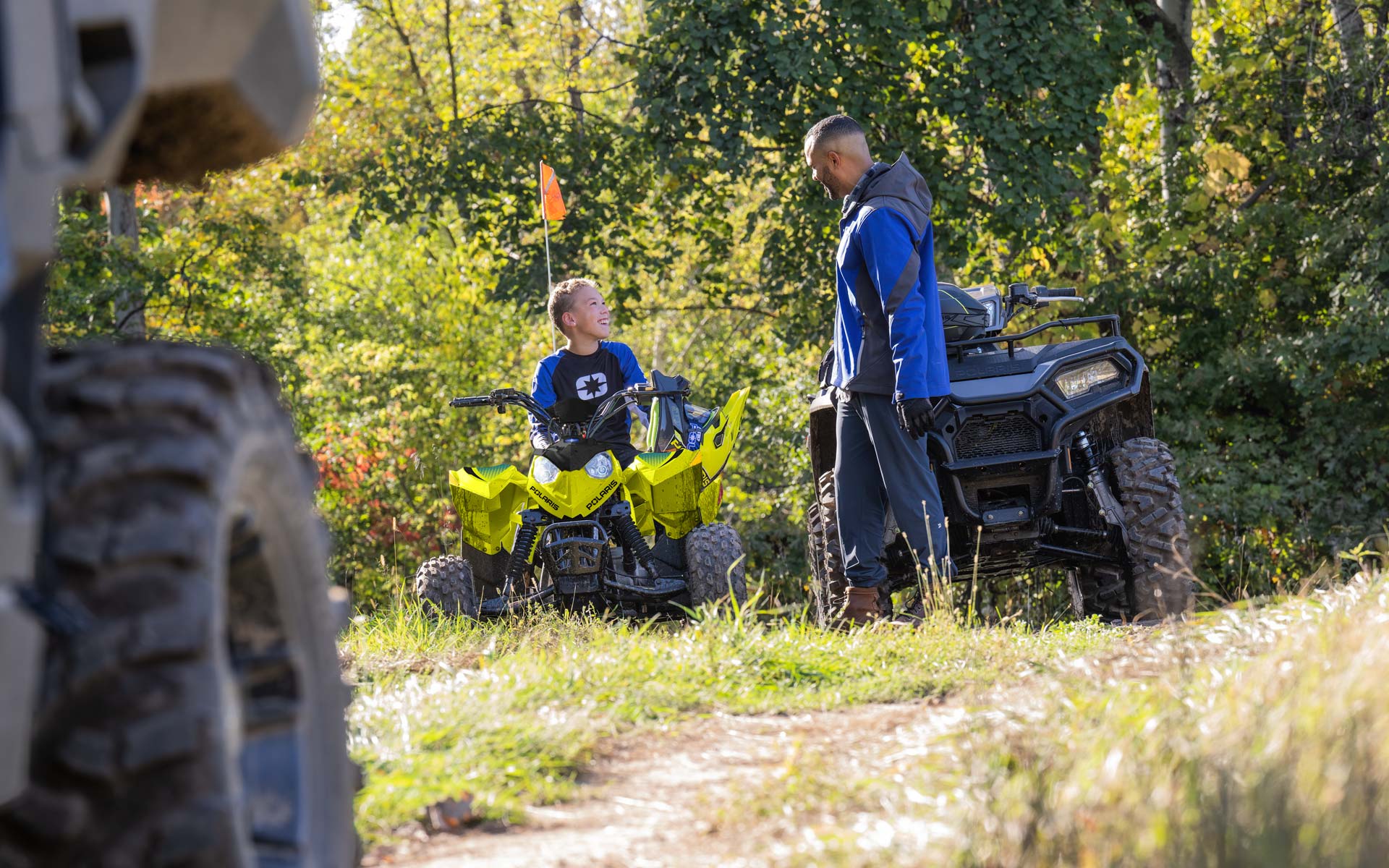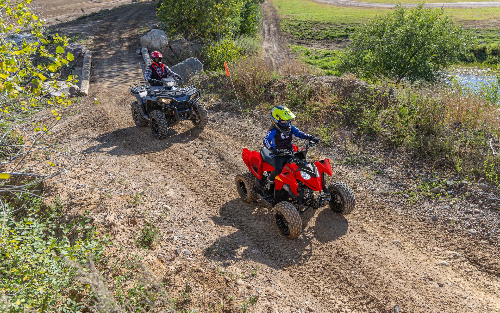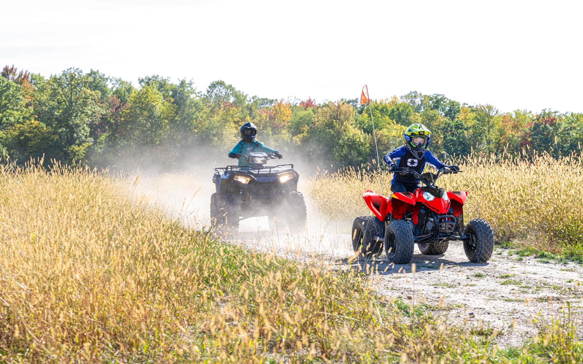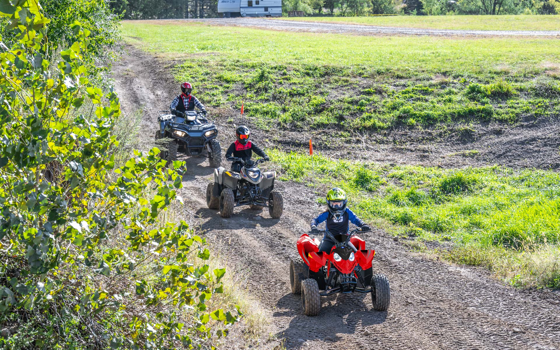 Con un motor EFI de 110cc y accesorios que permiten a los conductores más jóvenes crecer con su ATV. Hecho para conductores mayores de 10 años.